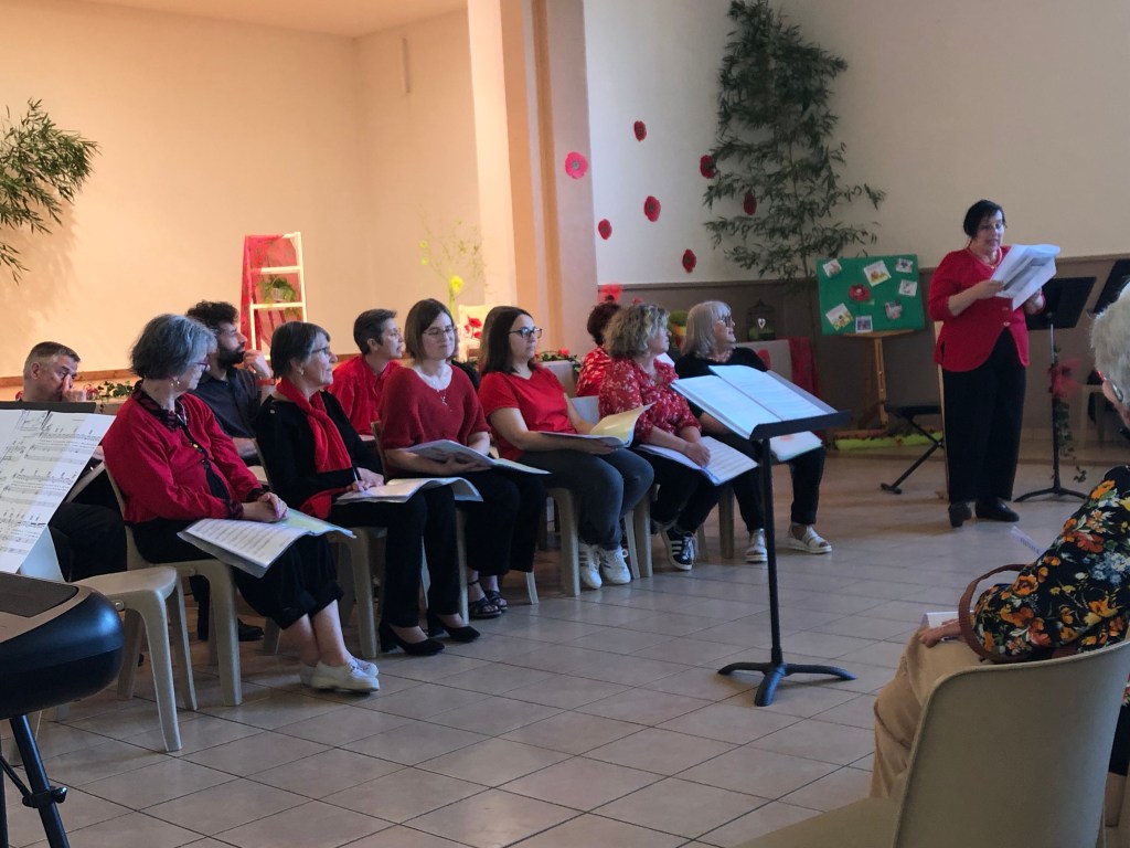 Malgré le temps ensoleillé qui incitait plus à la promenade en bords de Saône, c’est au Foyer rural de Cormoranche-sur- Saône, décoré d’une multitude de coquelicots, que plus d’une centaine de personnes se sont retrouvées dimanche après-midi, à l’invitation commune de l’ensemble vocal de Saint-Cyr-sur-Menthon et de la bibliothèque municipale de Cormoranche.
