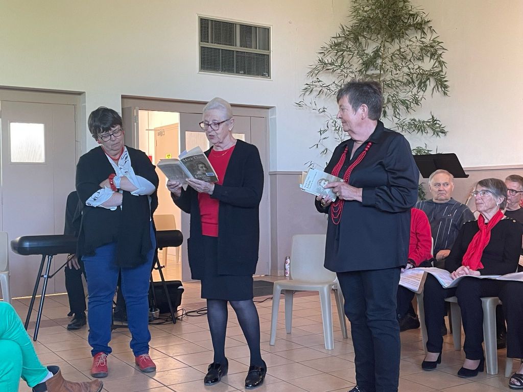Le concert proposé s’intitulait « Sur le chemin de notes et de mots » et, effectivement, il a été question de notes avec les belles chansons d’Anne Sylvestre et de mots par la lecture d’extraits du roman de Marie Chaix, « Juliette, chemin des cerisiers » ou du recueil d’Anne Sylvestre « Coquelicot et autres mots que j’aime ».