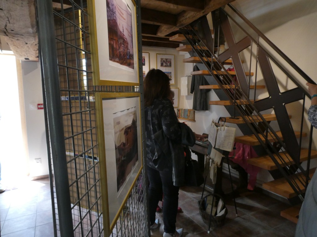 La première expo était déjà en place samedi pour ne pas perdre de temps et pour fêter dignement ce nouveau lieu. Elle a pour thème « Remettre l’église et la mairie au centre du village ». Il s’agit d’un beau travail de mémoire à l’occasion des 200 ans de la construction de l’église et des 150 ans de la construction de ce qui fût la mairie-école, et qui reste aujourd’hui uniquement l’école. On peut y trouver des photos, des documents, des objets rappelant deux siècles d’histoire laïque et religieuse. On lira avec humour