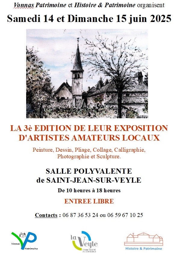 Les associations « Vonnas Patrimoine » et « Histoire & Patrimoine » ont lancé leur troisième édition de leur exposition annuelle d’artistes locaux. Cet événement se tiendra à la salle polyvalente de Saint-Jean-sur-Veyle les 14 et 15 juin 2025, de 10h à 18h. Cette exposition mettra en lumière le talent et la passion de 27 artistes amateurs de la région, offrant au public une immersion dans l’univers des beaux-arts.