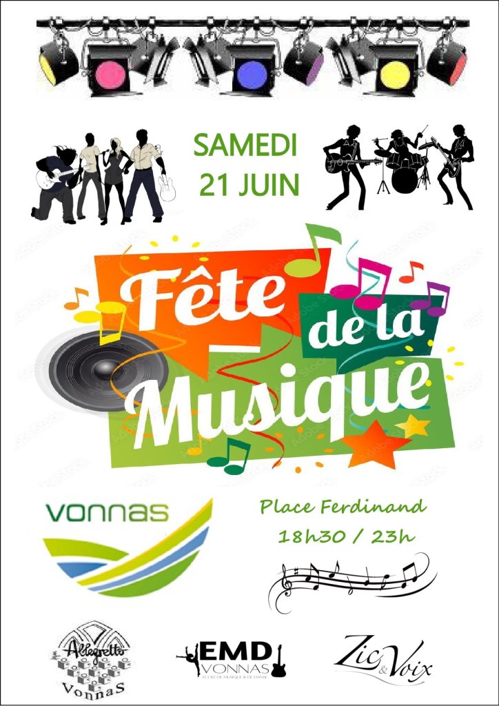La mairie de Vonnas invite les vonnassiens à rejoindre la Fête de la Musique, qui se déroulera le samedi 21 juin, de 18h30 à 23h, sur la place Ferdinand de Béost. Cet événement, est organisé en partenariat avec l’association Zic & Voix, l’Ecole de musique et de danse de Vonnas et le Choeur Allegretto qui vont faire vibrer la place centrale de la commune.