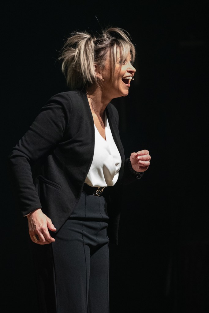 En fait la coiffure et la comédie sont les deux passions de ma vie. Depuis que je suis toute petite j’adore faire rire et me mettre en scène. A partir de 2002, j’ai fait partie d’une compagnie théâtrale dans mon village de Chavannes-sur-Suran, puis en 2017 j’ai décidé de me lancer seule sur scène. Depuis je tourne avec mon association et les salles sont pleines.