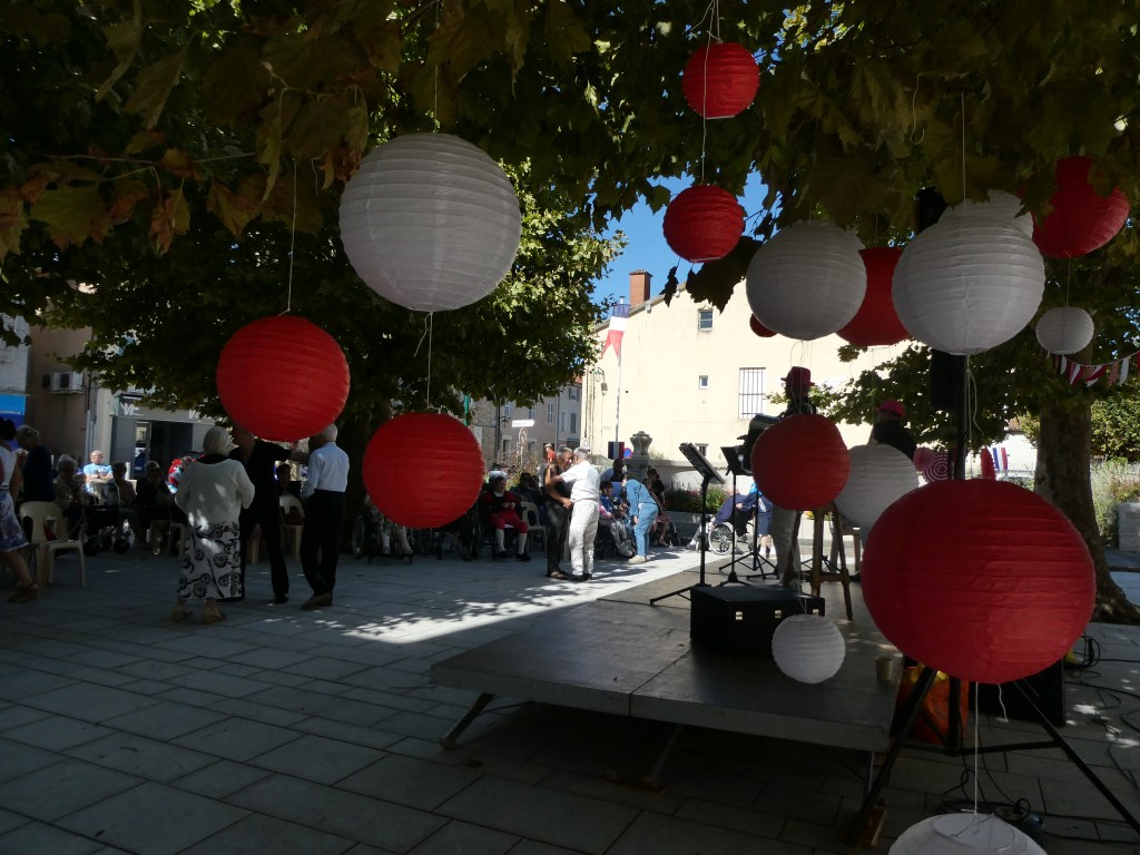 La municipalité de Pont-de-Veyle était partenaire de cet événement organisé par l’équipe d’animation de l’EPHAD. Toutes les familles des résidents avaient reçu une invitation afin d’accompagner leurs proches pour cet événement festif. Les associations locales d’anciens ont été également cordialement invitées ainsi que la population de Pont de Veyle. Les familles ont bien joué le jeu et sont venues nombreuses. Les résidents ont été enchantés par l’orchestre « Crescendo »venu de Bourg-en-Bresse, bien des chansons et des airs musicaux rappelaient des souvenirs souvent émus. Pour ceux qui le pouvaient, la piste de danse improvisée sous les arbres du parvis de l’église a accueilli les passionnés. Les personnes venues de l’extérieur ont également beaucoup apprécié ce moment très agréable et les passants se sont arrêtés un moment, le sourire aux lèvres. C’était une belle façon d’ouvrir cette résidence sur l’extérieur et ainsi de créer des liens sociaux très importants pour les personnes âgées.