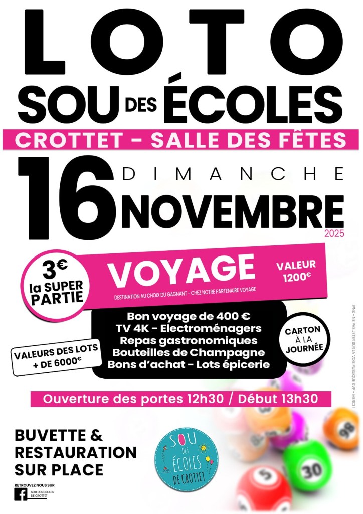 Loto du Sou des écoles de Crottet, le dimanche 16 novembre 2025
