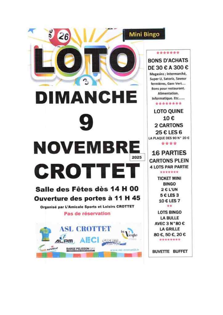 Loto de l’Amicale Sports et Loisirs (ASL) de Crottet, le dimanche 9 novembre 2025