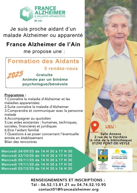 Pour soutenir les proches d’un parent malade, France Alzheimer met également en place une séance de formation gratuite. Elle se tiendra le mercredi 3 décembre 2025, de 14h30 à 17h30, animée par un binôme psychologue–bénévole. Cette formation vise à mieux comprendre la maladie, savoir réagir face aux troubles et préserver sa propre santé.