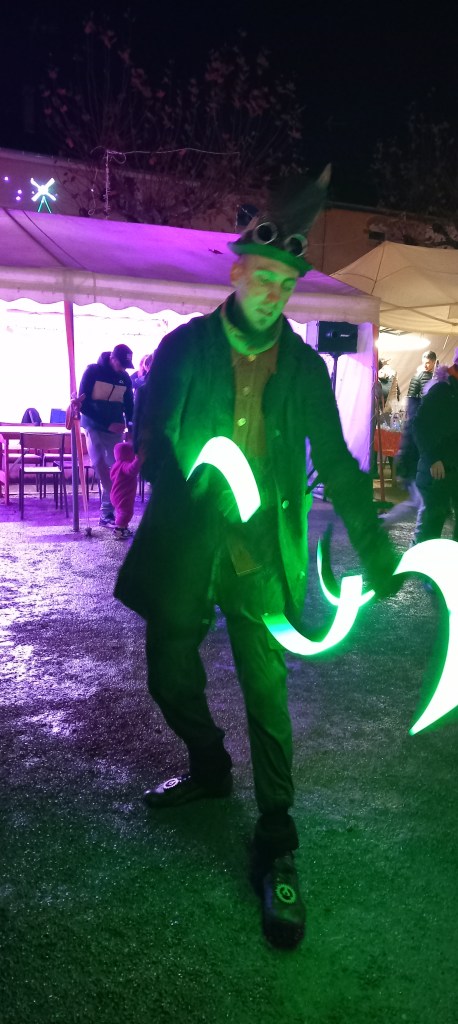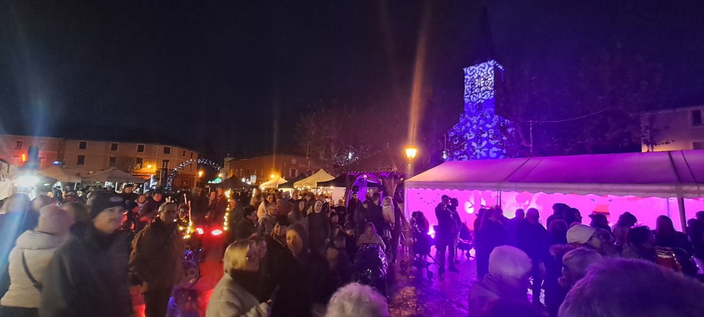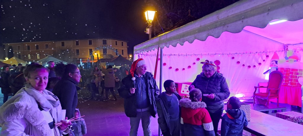 Un spectacle de rue original, porté par trois artistes jouant avec la lumière, a également enchanté le public. Trente-trois exposants de qualité avaient pris place autour de la place, complétés par un buffet et une buvette très appréciés en cette fraîche soirée d’hiver. Le Père Noël, bien sûr, était au rendez-vous pour le plus grand plaisir des enfants.