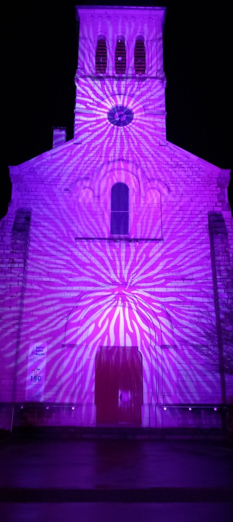Autre moment fort de la soirée : la façade de l’église sublimée par de superbes projections lumineuses, offrant un décor magique au cœur du village.