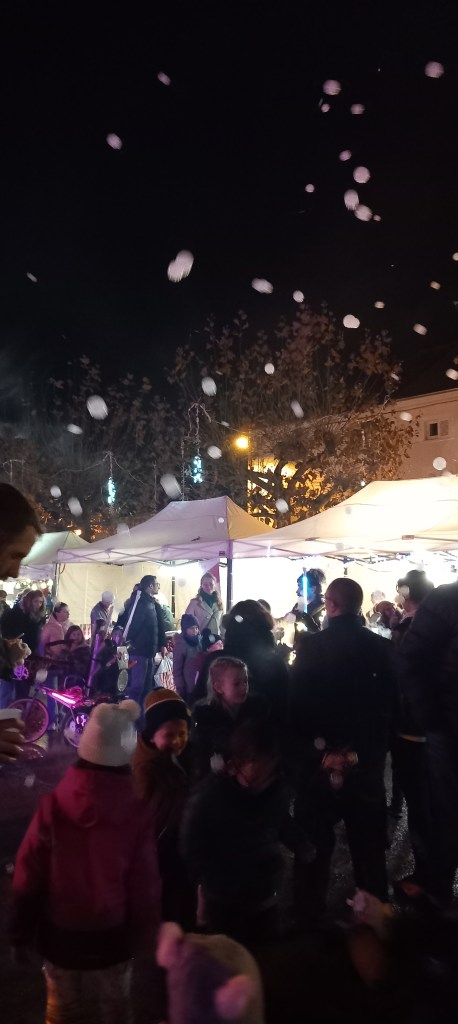 Le point culminant de la soirée a eu lieu à 18h avec l’illumination d’un magnifique sapin, déclenchant l’émerveillement des petits comme des grands. Les enfants ont ensuite profité de nombreuses animations, notamment une surprenante machine projetant des bulles remplies de fumée, évoquant de joyeux flocons de neige, pour leur plus grand bonheur. Tours en calèche, atelier maquillage, goûter offert : tout avait été pensé pour ravir les plus jeunes.