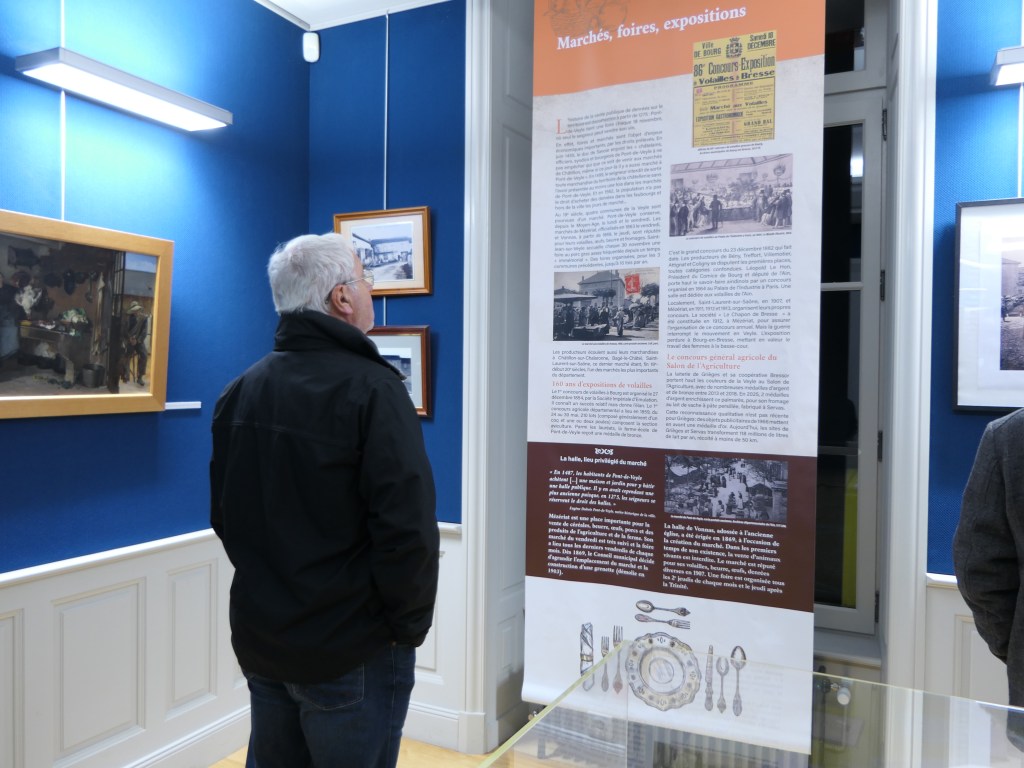 Village gourmand de Vonnas, Glorieuses de Bresse, menus présidentiels… L’exposition met à l’honneur des hommes et des femmes qui œuvrent chaque jour pour préserver le patrimoine gastronomique local. Ces producteurs sont parvenus, au fil du perfectionnement de leurs savoir-faire, à se hisser sur les podiums des plus prestigieux concours, à l’instar de Cyril Dégluaire, éleveur avicole à Saint-Cyr-sur-Menthon qui, il y a encore quelques jours, était à nouveau sacré lors des Glorieuses de Bresse 2025.