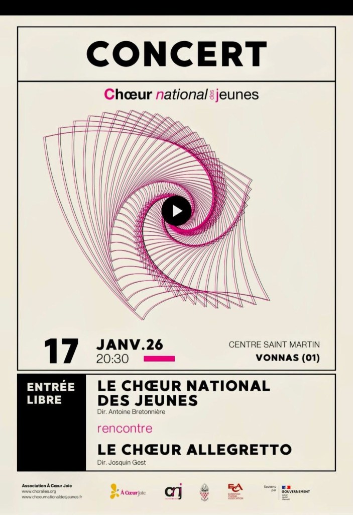 Le samedi 17 janvier 2026, le Chœur Allegretto de Vonnas recevra le Chœur National des Jeunes (CNJ) pour un concert d’exception.