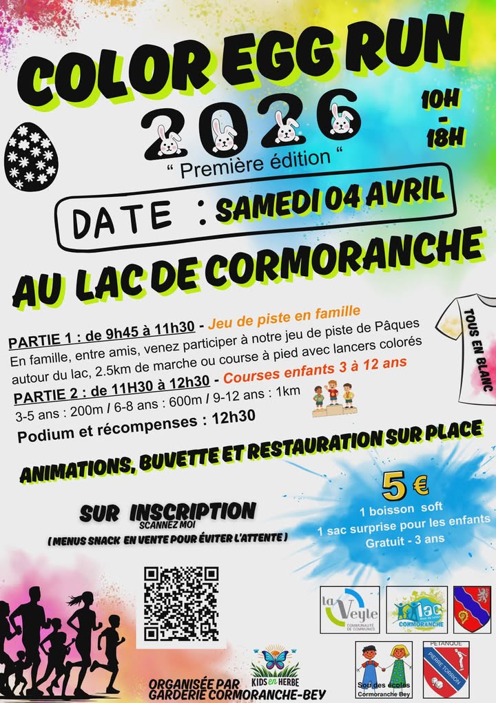 La Color Egg Run est organisée par la garderie de Cormoranche-sur-Saône et Bey, avec le soutien de la Communauté de commune de la Veyle, le Crédit Agricole Centre-Est, la commune de Cormoranche-sur-Saône.